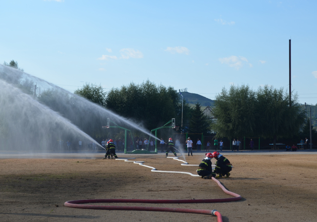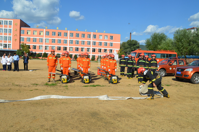演練期間,森林消防專業(yè)隊(duì)介紹了森林消防主要設(shè)備——風(fēng)力滅火機(jī)的使用方法和基本技戰(zhàn)術(shù),撲救中緊急避險(xiǎn)等安全常識(shí),并進(jìn)行了現(xiàn)場模擬演練;公安消防大隊(duì)普及了消防安全常識(shí)和滅火水帶連接演示,指導(dǎo)森林消防隊(duì)員進(jìn)行“單人二帶”和“三人五帶”的滅火水帶連接演練,并進(jìn)行了水車快速施救的實(shí)戰(zhàn)演練。