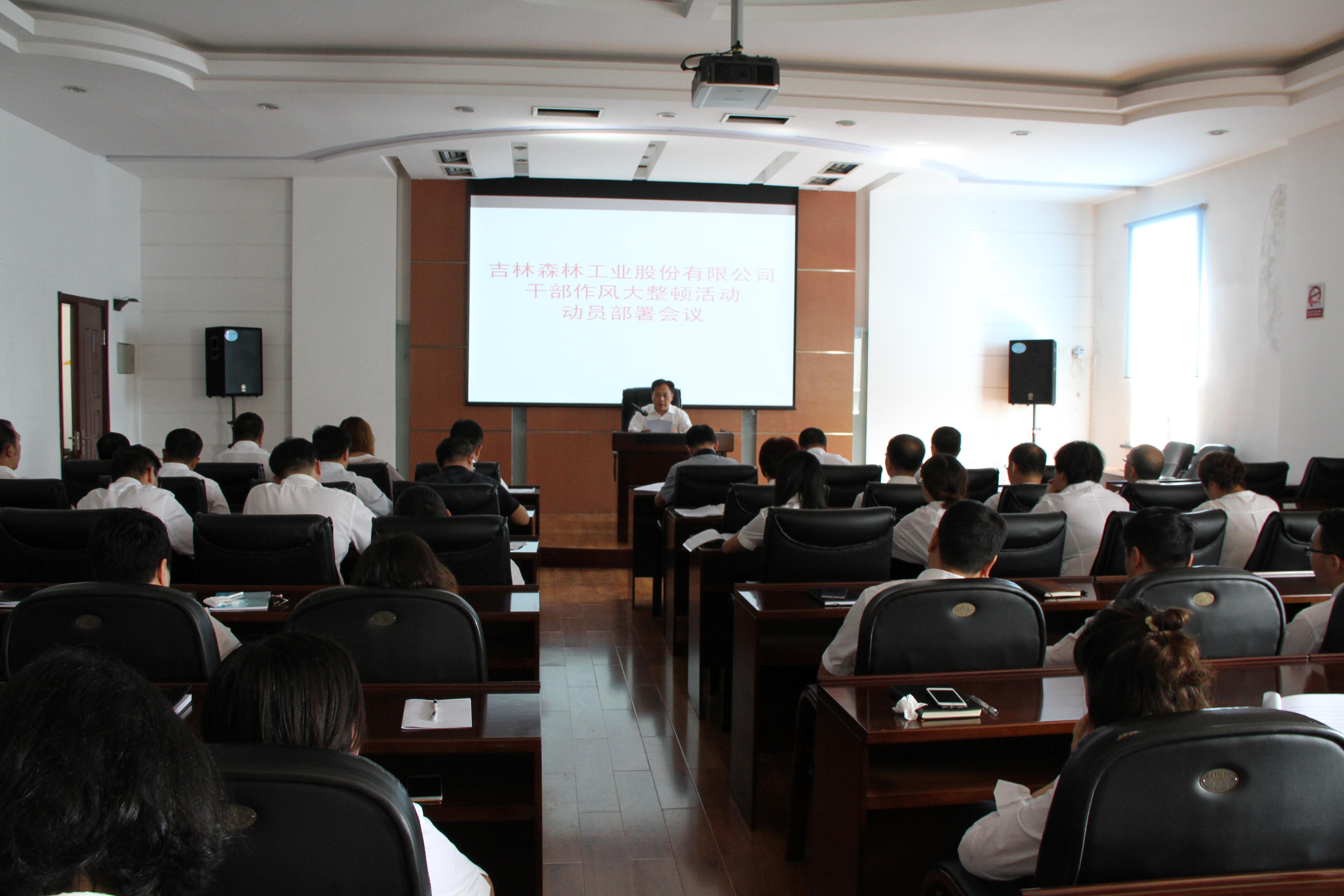 按照省委及集團黨委部署要求,8月31日,吉林森林工業(yè)股份有限公司在五樓會議室召開干部作風(fēng)大整頓活動動員部署會議。會上,傳達貫徹了集團黨委書記于海軍同志8月29日講話精神,公布了股份公司干部作風(fēng)大整頓活動實施方案,學(xué)習(xí)傳達了集團公司“三重一大”決策制度實施辦法,股份公司黨委書記姜長龍同志對活動進行了動員部署。股份公司領(lǐng)導(dǎo)班子成員,分子公司黨組織負責(zé)人,全體機關(guān)干部參加會議,集團紀委劉東昉同志到會指導(dǎo)。