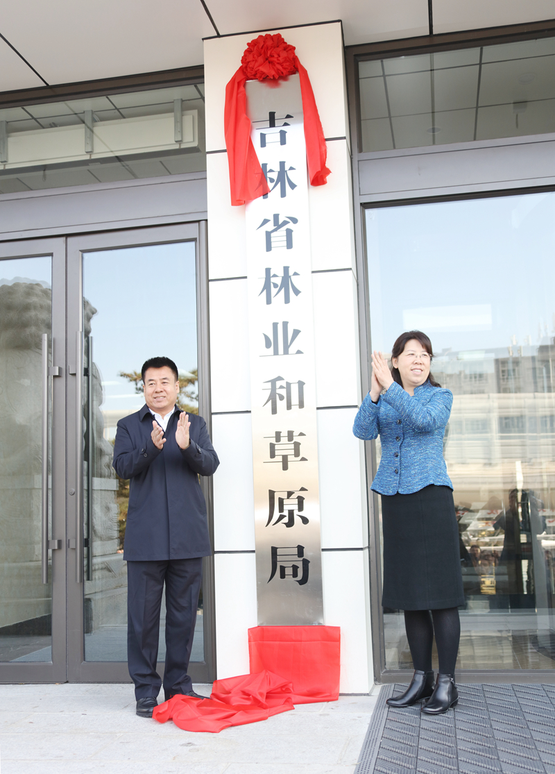 吉林省副省長(zhǎng)李悅和吉林省林業(yè)和草原局新任局長(zhǎng)金喜雙一起揭牌。