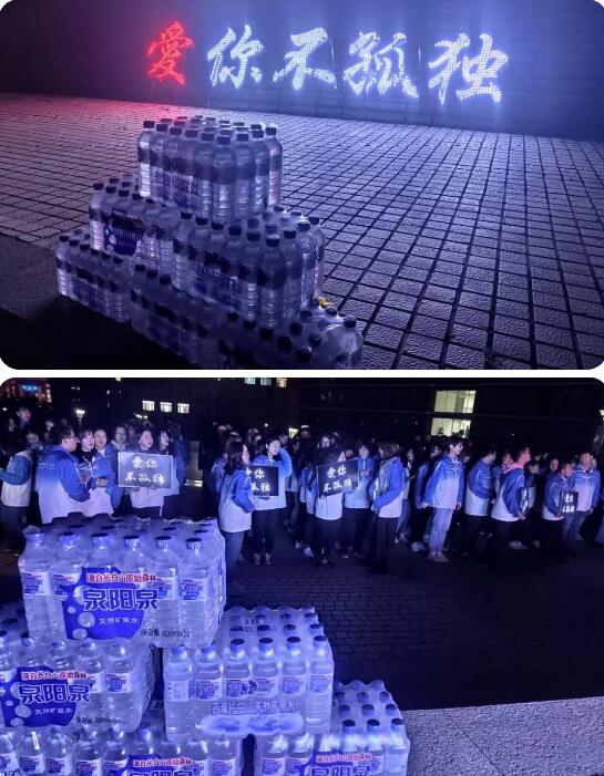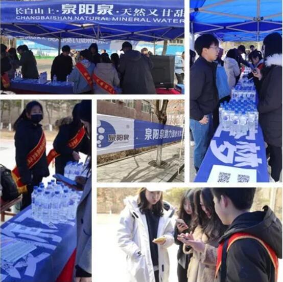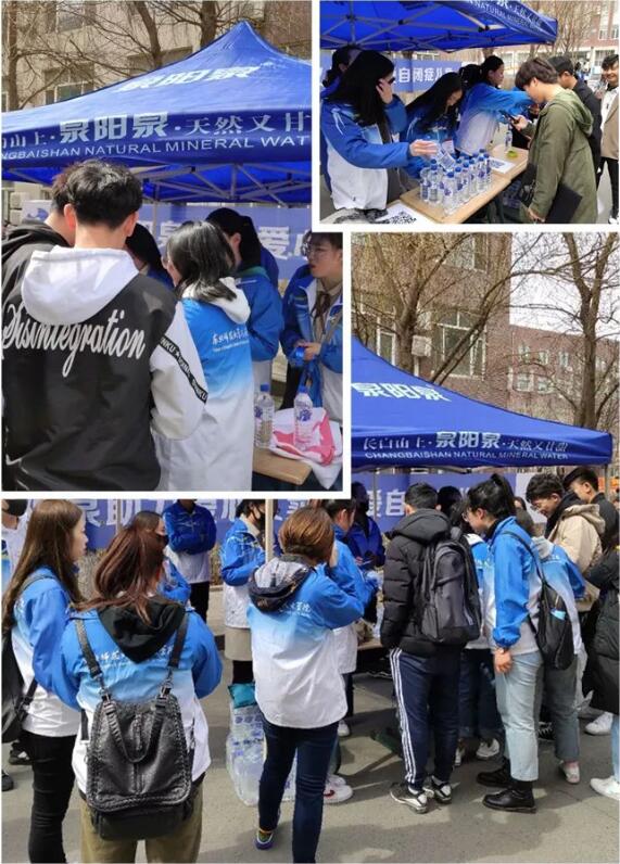 四月的長春雖已步入了春天,但天氣依舊寒冷,盡管志愿者們凍得瑟瑟發(fā)抖,但每個成員都積極地參加到活動中,將源自長白山的泉陽泉天然礦泉水送至每個同學手中。