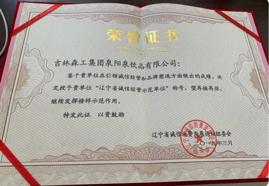 為了更好地貫徹落實(shí)習(xí)近平總書(shū)記在民營(yíng)企業(yè)家座談會(huì)上的講話(huà)精神,以“保質(zhì)保量、誠(chéng)信經(jīng)營(yíng)、綠色消費(fèi)”為主題,樹(shù)立一批“講誠(chéng)信,負(fù)責(zé)任,守法紀(jì)”的先進(jìn)典型。為企業(yè)與企業(yè)之間、企業(yè)與單位之間、企業(yè)與消費(fèi)者之間搭建了一個(gè)很好的交流、合作平臺(tái)。在此次論壇中,吉林森工集團(tuán)泉陽(yáng)泉有限公司榮獲“遼寧省誠(chéng)信經(jīng)營(yíng)示范單位”榮譽(yù)稱(chēng)號(hào)。