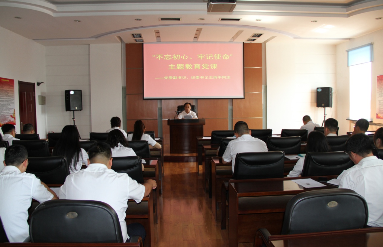 王炳平同志代表公司黨委,講授了題為《把握“三化”要求,深入結合實踐,切實抓好“不忘初心、牢記使命”主題教育》的黨課。共同回顧了我們黨不平凡的發(fā)展歷程,講解了什么是“初心”“使命”、我們?yōu)槭矀円獜娬{“初心”“使命”,并對公司開展主題教育提出了“清晰化”“明確化”和“緊密化”要求,號召機關全體黨員干部在推進主題教育過程中,努力掌握新思想理論武器,練就過強過硬的政治素質,時刻保持“四有”心態(tài),形成踏實干事“四個”能力,為股份公司健康持續(xù)穩(wěn)定發(fā)展做出應有貢獻。