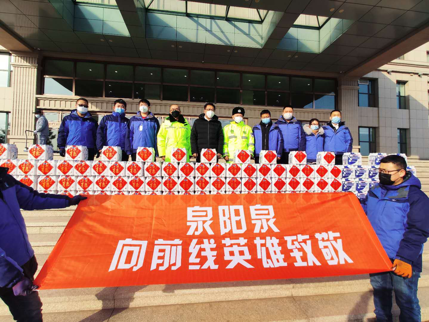“泉陽(yáng)泉,向前線英雄致敬”系列活動(dòng)的第六站,吉林森林工業(yè)股份有限公司總經(jīng)理兼泉陽(yáng)泉公司董事長(zhǎng)王盡暉、吉林森工集團(tuán)泉陽(yáng)泉飲品有限公司黨委書記兼總經(jīng)理黃碩率隊(duì)來(lái)到了長(zhǎng)春市公安局交警支隊(duì),為奮戰(zhàn)在長(zhǎng)春市內(nèi)抗疫一線的交警同志們捐贈(zèng)泉陽(yáng)泉天然礦泉水以示慰問(wèn),向戰(zhàn)斗在疫情防控一線的交警們致敬!市交警支隊(duì)政委黃維國(guó)、政工處處長(zhǎng)白楊等公安干警,出面接待并給予高度評(píng)價(jià)。