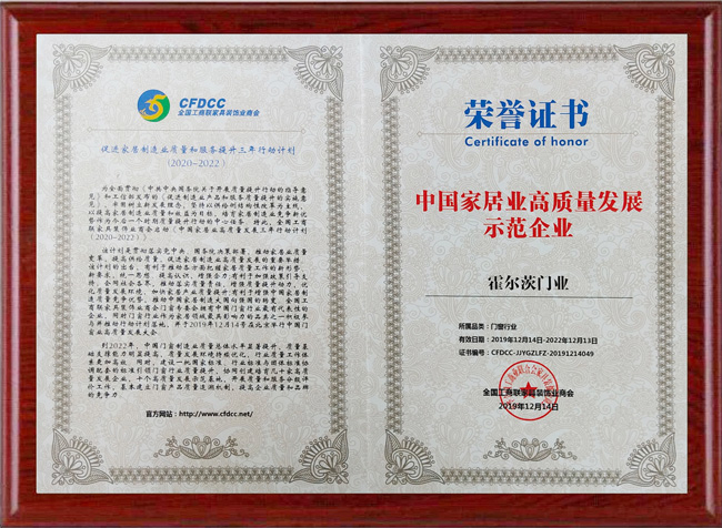 北京霍爾茨家居科技有限公司憑借在木門(mén)領(lǐng)域的杰出貢獻(xiàn),獲頒 “中國(guó)家居業(yè)高質(zhì)量發(fā)展示范企業(yè)”榮譽(yù)。這并不是霍爾茨多年來(lái)收獲的唯一獎(jiǎng)項(xiàng),僅2019年,霍爾茨就捧回了“品牌創(chuàng)新獎(jiǎng)”、“中國(guó)家居冠軍榜匠心制造品牌”、“中國(guó)家居影響力品牌”、“中國(guó)門(mén)窗匠心品牌”、“中國(guó)木門(mén)行業(yè)定制領(lǐng)導(dǎo)品牌”、“中國(guó)木門(mén)行業(yè)創(chuàng)新獎(jiǎng)”、“金星獎(jiǎng)”、“金木匠獎(jiǎng)”等二十余座大獎(jiǎng),均由家居相關(guān)權(quán)威組織機(jī)構(gòu)、家居行業(yè)主流媒體等層層篩選頒發(fā)。