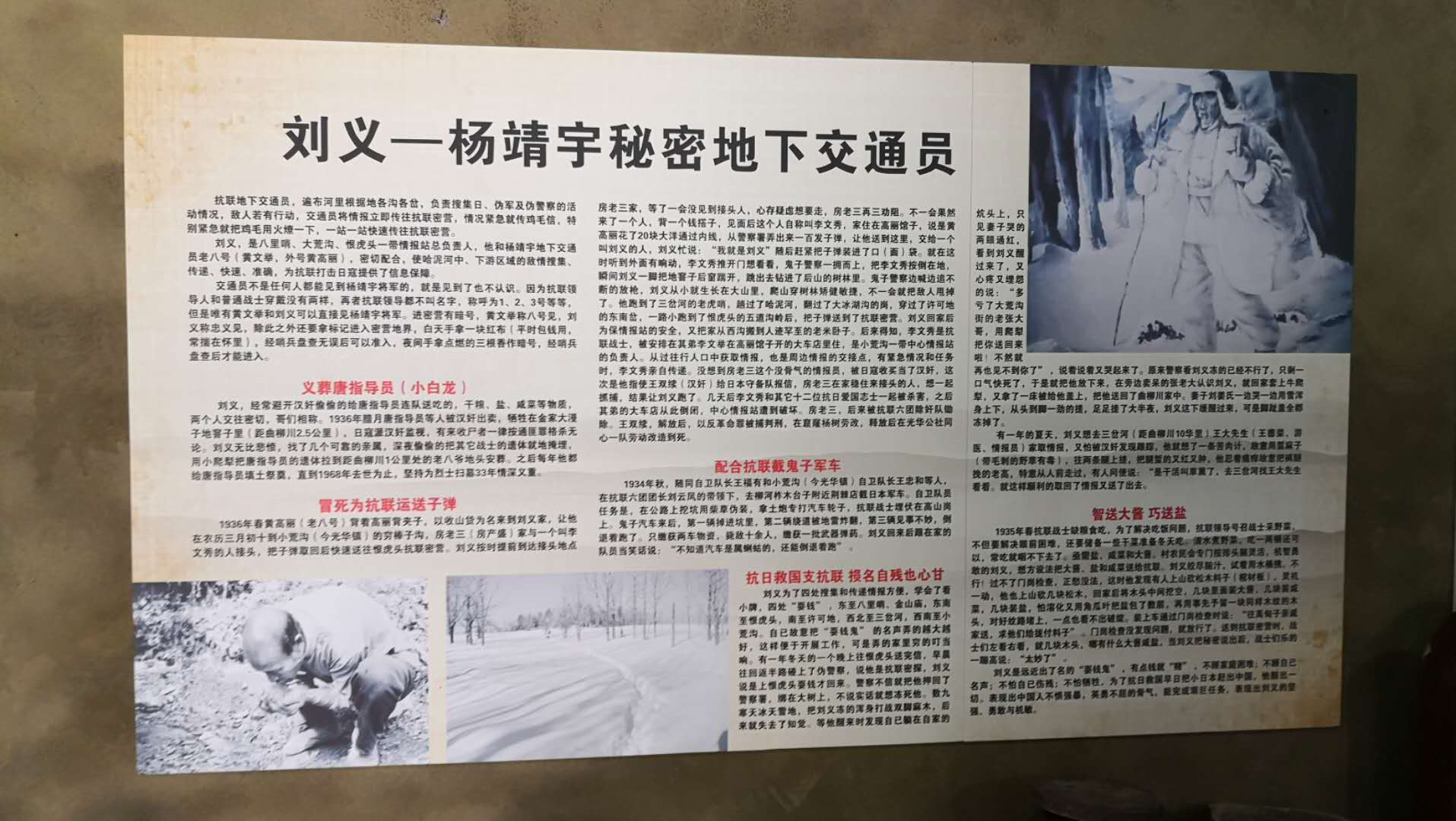 河里抗日展館通過抗聯(lián)人家、印記永恒、歷史豐碑、紅色記憶等展示,詳細介紹了東北抗聯(lián)軍如何抵御外辱,將不屈不撓、前仆后繼的抗聯(lián)精神發(fā)揚光大。