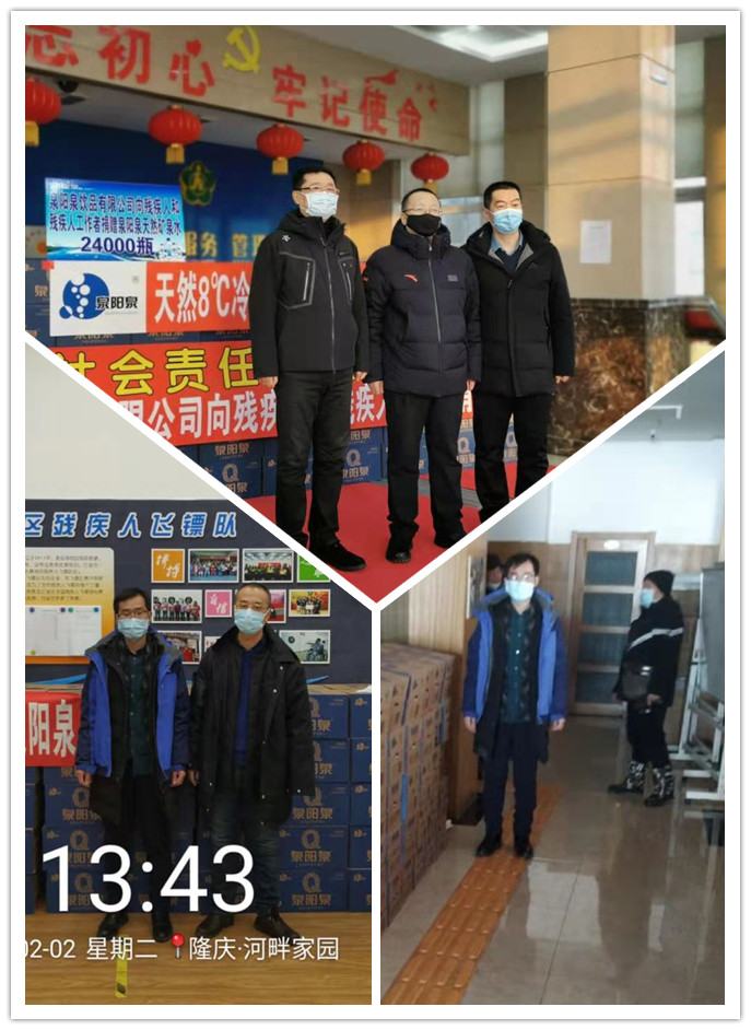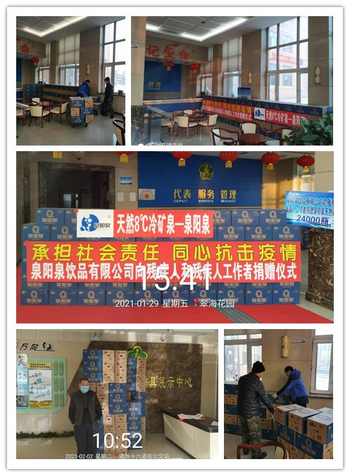 2021年伊始,新冠疫情再度襲來,為保障黑龍江省一線的殘疾人工作者及貧困殘疾人的抗疫物資使用及特殊群體的基本生活不受影響,同時,也為了能更好的幫助基層服務(wù)殘疾人的工作人員更好的工作,吉林森工集團(tuán)泉陽泉飲品有限公司于2021年1月29日——2月5日,向黑龍江省殘疾人福利基金會各單位捐贈泉陽泉天然礦泉水,為抗擊疫情,貢獻(xiàn)自己的力量。