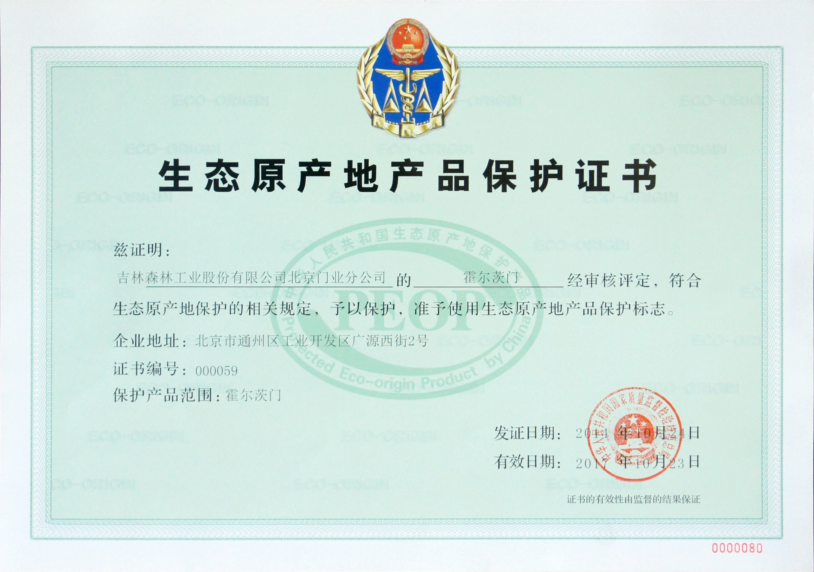 “生態(tài)原產(chǎn)地保護(hù)產(chǎn)品”標(biāo)志及證書