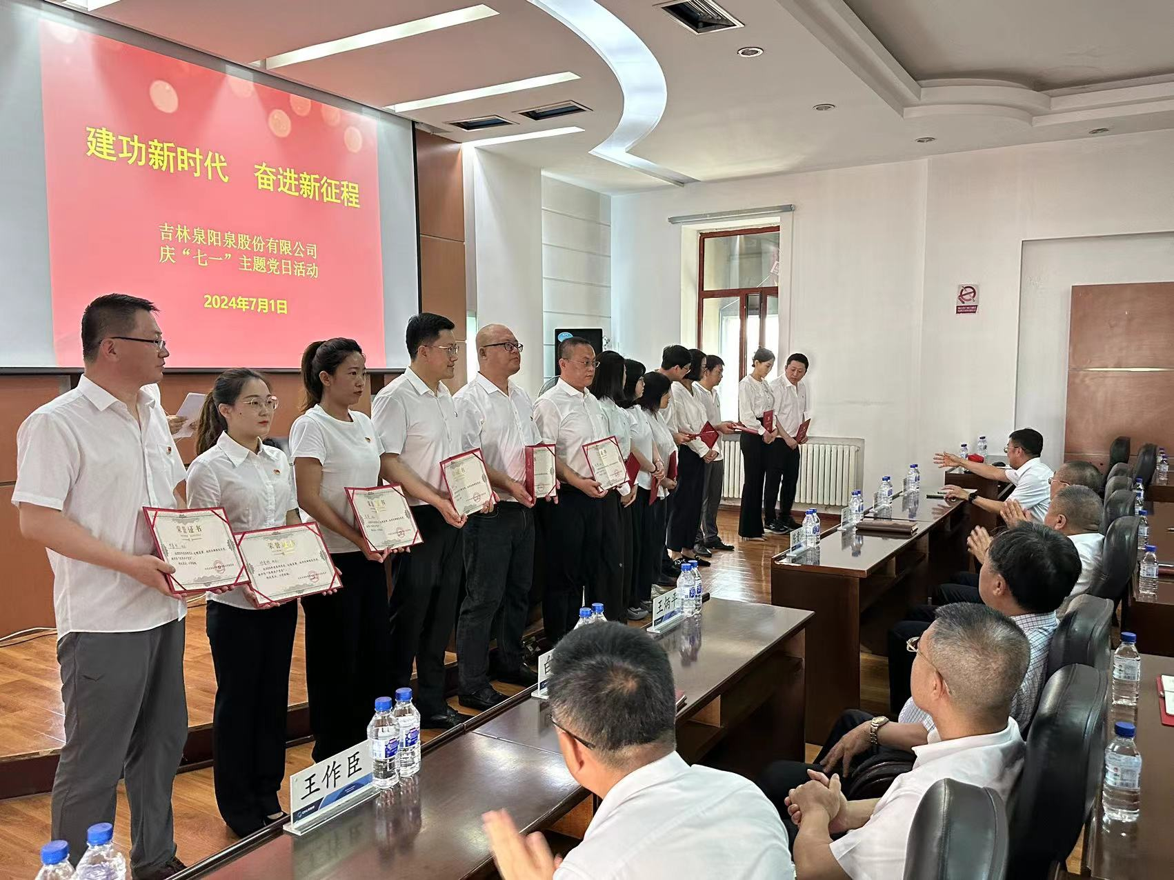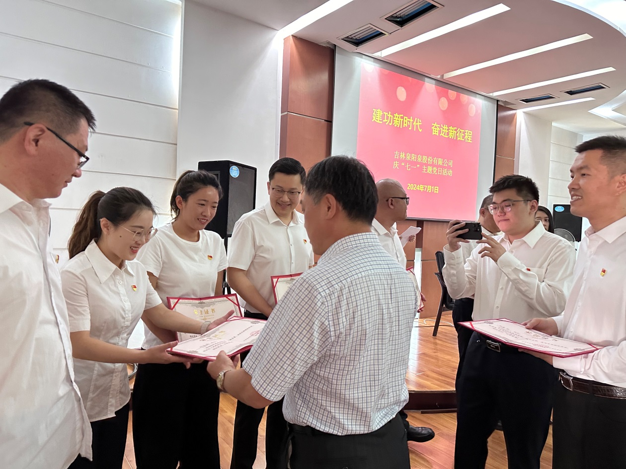 為隆重慶祝中國共產(chǎn)黨成立103周年,弘揚(yáng)偉大建黨精神,增強(qiáng)廣大黨員的光榮感和使命感,7月1日,吉林泉陽泉股份有限公司組織開展了“建功新時(shí)代,奮進(jìn)新征程”慶“七一”主題黨日活動(dòng)。通過重溫入黨誓詞、授予先進(jìn)等方式引導(dǎo)黨員領(lǐng)導(dǎo)干部追憶入黨初心、擔(dān)當(dāng)職責(zé)使命,為打造一流上市公司奮勇前進(jìn)!
