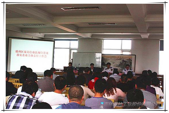 為推進(jìn)全區(qū)企業(yè)落實(shí)質(zhì)量安全主體責(zé)任,通州區(qū)質(zhì)監(jiān)局對重點(diǎn)產(chǎn)品實(shí)施了分類管理,開展企業(yè)守法生產(chǎn)告知,實(shí)現(xiàn)有效監(jiān)管。5月14日,通州區(qū)質(zhì)監(jiān)局組織召開了“通州區(qū)家具行業(yè)法規(guī)宣貫及落實(shí)企業(yè)主體責(zé)任工作會(huì)”,轄區(qū)內(nèi)的60家家具生產(chǎn)企業(yè)負(fù)責(zé)人參會(huì),并現(xiàn)場簽訂了《守法生產(chǎn)經(jīng)營告知書》。